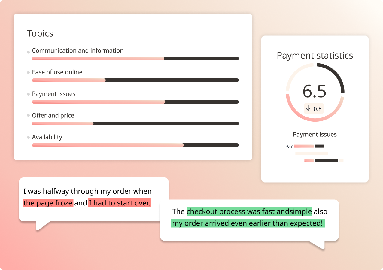 By analysing these signals, you can understand what customers value most, where they expect improvement, and how their feedback shapes loyalty and reputation. Turn these insights into clear actions that guide product development, merchandising, and communication, all grounded in the real voice of your customers