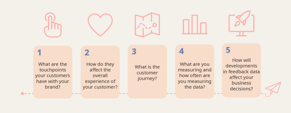 Det är också viktigt att ha en helhetsbild av kundresan. Det innebär att förstå var kunder möter ditt varumärke, hur olika interaktioner påverkar upplevelsen, hur kontaktytor hänger ihop från första intryck till lojalitet, vad ni mäter och hur ofta, samt hur feedbacken faktiskt bidrar till bättre affärsbeslut.
